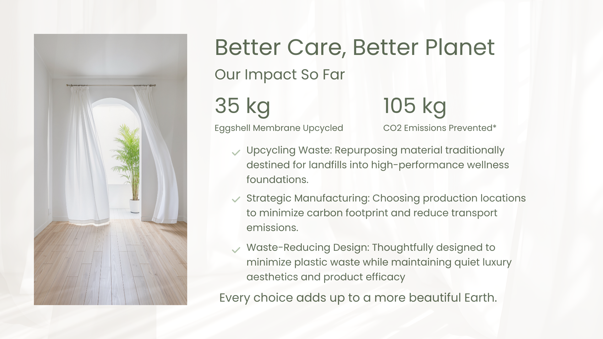 "I use ÔROJI every Sunday night with my gua sha and a stick of C’est la BERRY. It’s become my me-time ritual. My skin feels firmer and brighter, and even my neck looks smoother. Knowing it’s made with upcycled French eggshell collagen makes it even more special — effective and sustainable."